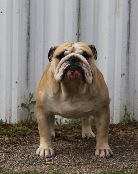 En condition, masculin, bien typé, la tête pourrait être volumineuse. Crâne plat, Oreilles bien placées, bien portées, pli nasal important mais ne nuit pas au plan incliné de la face, excellent prognathisme, incisives en cuillère. Très joli corps mais un peu juvénile mais bien construit, démarche athlétique, excellente respiration.